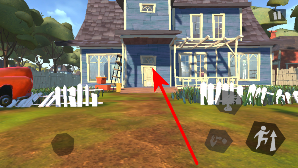 3、对面邻居房子,在熟悉操作后,朝着邻居的房子前进,找到房子的入口,尝试进入邻居的房子,探索里面的秘密。