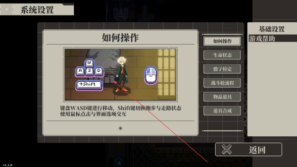 2、点击系统设置里的如何操作,了解通过键盘WASD键移动、用Shift键切换跑步与走路,以及使用鼠标与界面交互的操作方式。