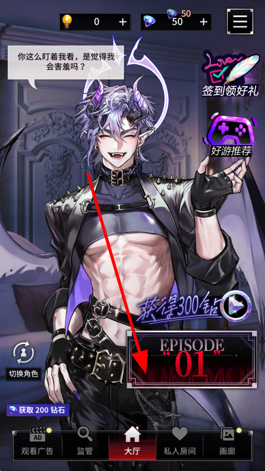 4、在大厅等场景,可查看相关内容,也能参与签到领好礼等活动,获取奖励,同时推进EPISODE01等章节的剧情,深入体验游戏的故事世界。