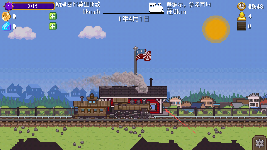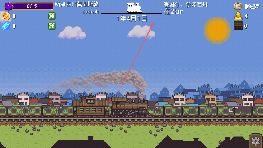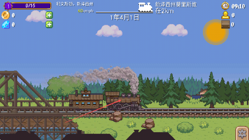 1、进入小小铁路游戏界面,查看上方1级标识、0/15任务进度,留意火车行驶速度60kmph及日期1年4月1日。