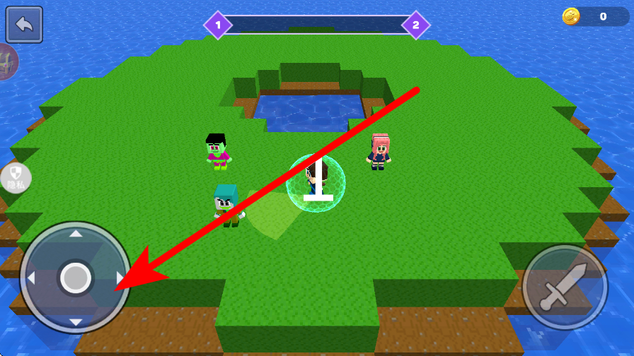 2、然后操控移动,通过操作移动相关按钮,控制角色在像素场景中移动,前往不同位置,为与其他角色的战斗做好准备。