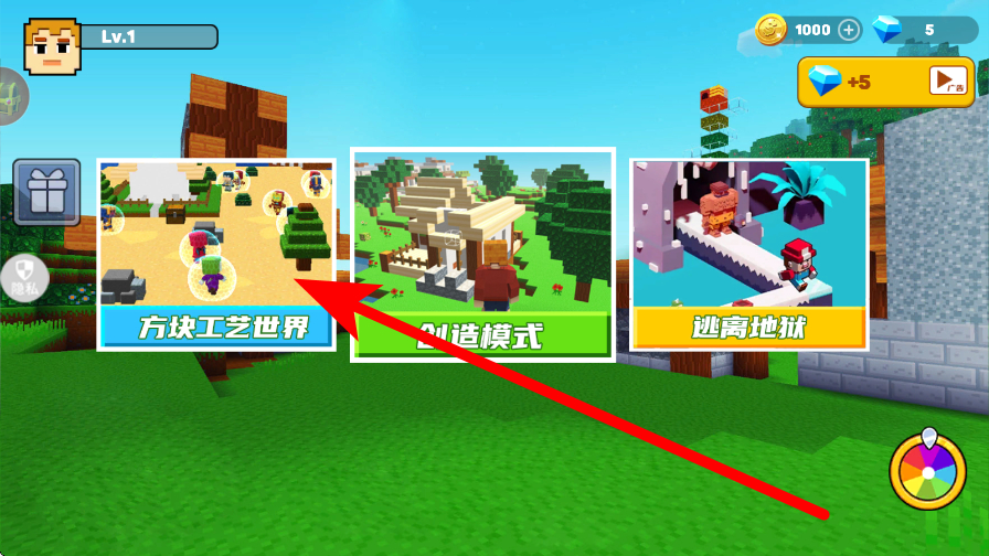 1、新手游玩首先选择模式,在界面中可挑选方块工艺世界等模式,进入不同的像素场景,开启相应的冒险战斗旅程。