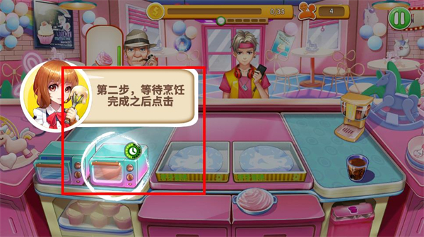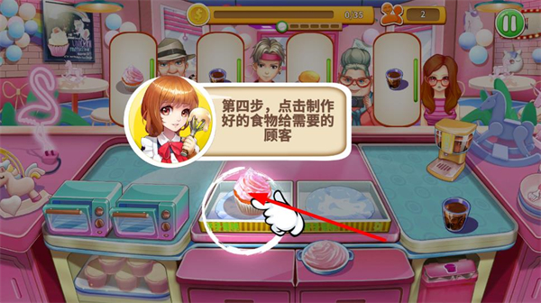 4、点击制作好的甜品,将其递给对应的顾客,完成订单。