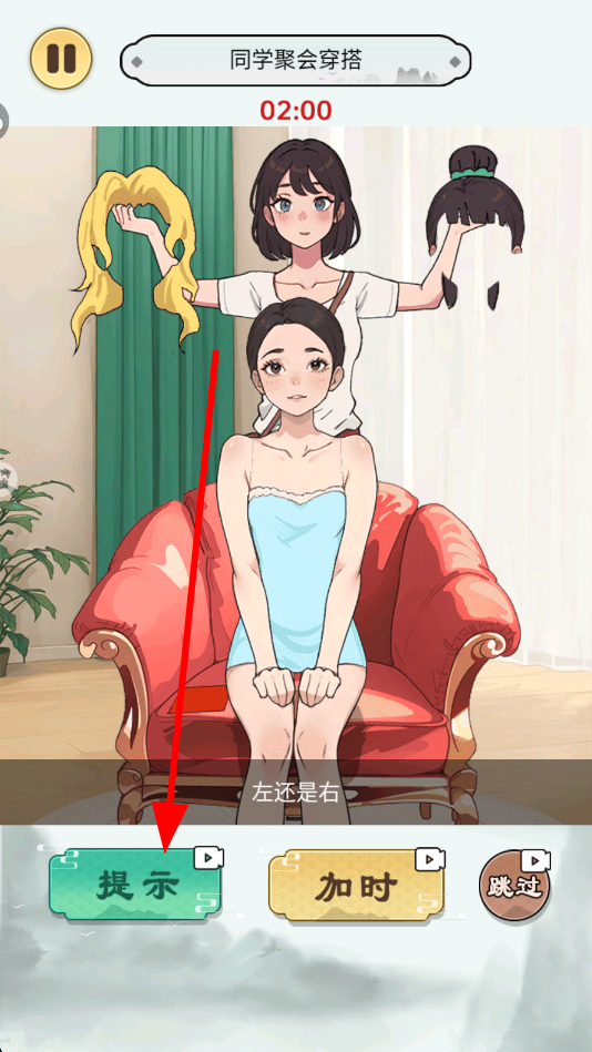 3、若在挑选过程中遇到困难,可以点击提示按钮,来获取穿搭的建议或线索,助力完成美妆穿搭任务游戏顺利通关。
