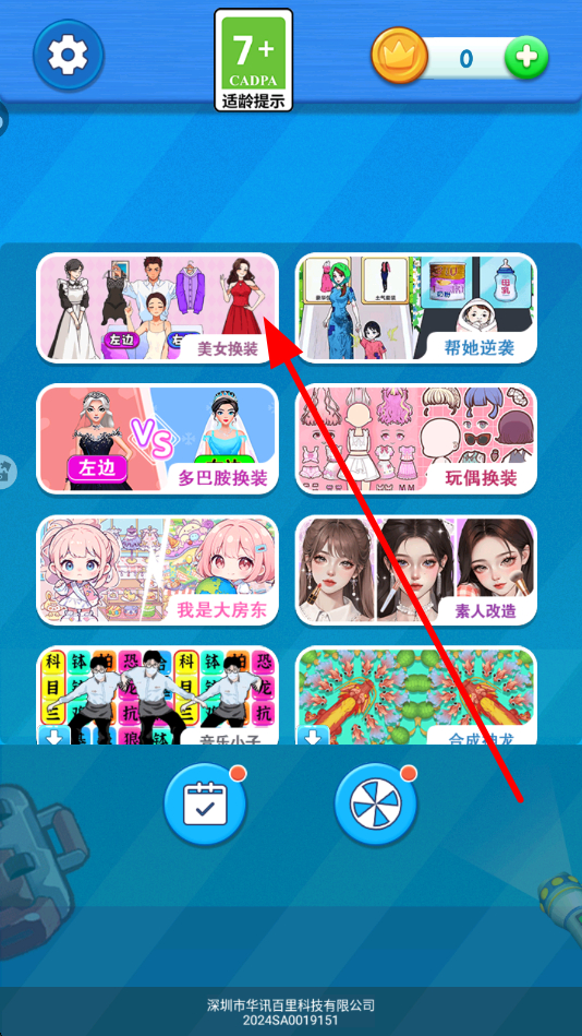 1、进入游戏后,玩家可以选择美女换装等美妆等多种玩法,开启美妆穿搭的挑战之旅,进入相应模式的游戏场景。