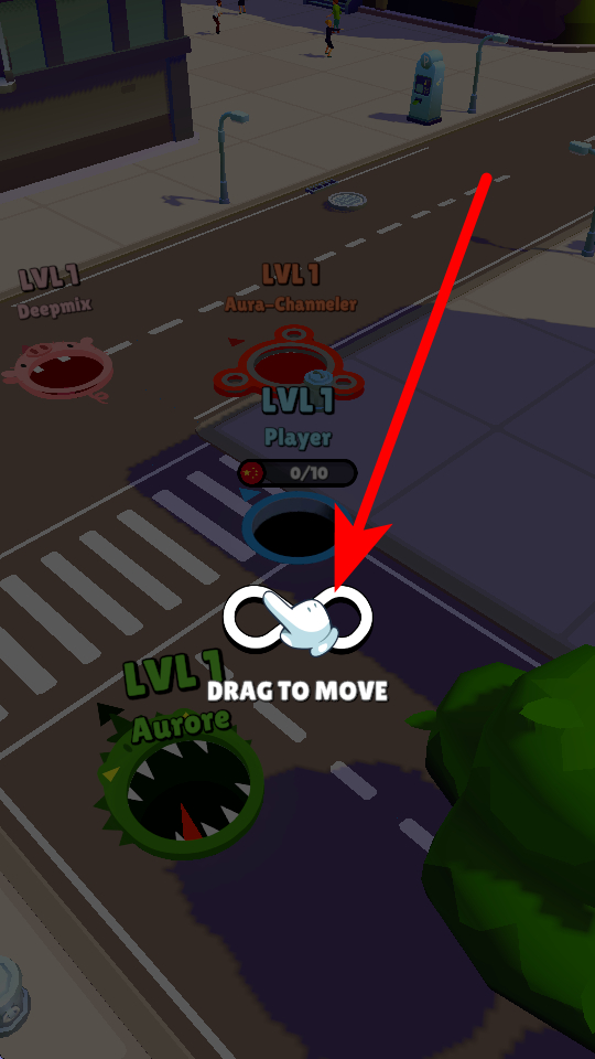 1、开局时,按照提示拖动屏幕,能操控黑洞移动,初始黑洞体积小,移动灵活,可在街道、广场等不同区域穿梭。