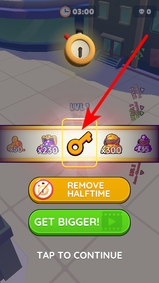 4、游戏有时间限制,在规定时间内,尽量多吞噬目标,提升黑洞等级和体积,结束时,体积越大、等级越高,获得的奖励越丰富,还有可能得到钥匙等道具,助力后续游玩。