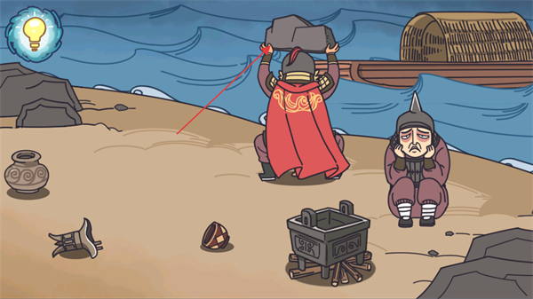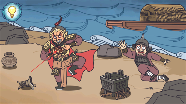 4、点击岸边的石头让将军举起石头,这次使用石头来沉舟。