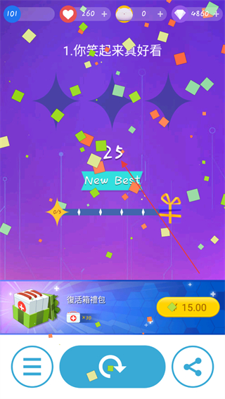 4、失误后退出关卡,根据本次的评分等级给予星星奖励,如果分数过低则关卡通过失败没有星星。