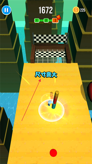 1、进入游戏后直接就在关卡画面,通过长按滑动屏幕控制小人移动以开始游戏。