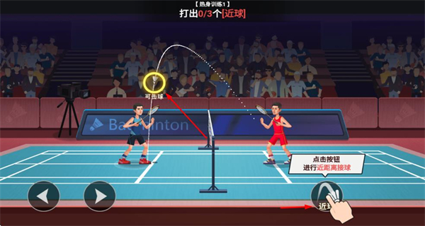 1、在近球训练关卡中,点击对应按钮打出近球,完成3/3个近球的目标,推进训练进度。