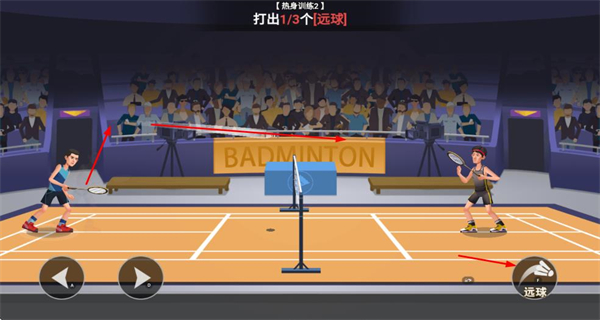 2、切换至远球训练关卡,通过操作打出远球,达成3/3个远球的训练要求,解锁新的训练内容。
