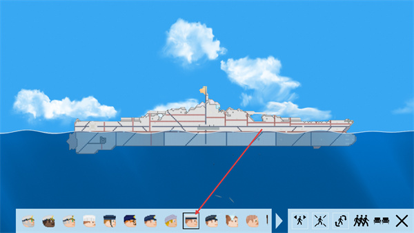 3、点击底部选中的船员头像,将对应的船员部署到当前的像素风战舰上,完成船员配置以推进战舰相关游戏进程。