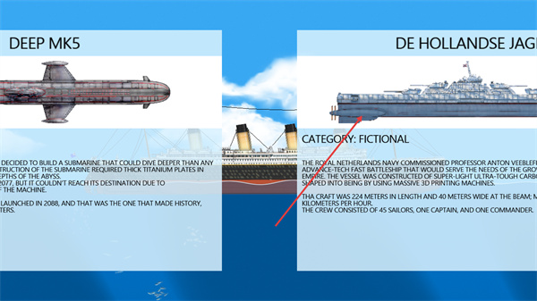 2、在该界面查看所有的船只信息,了解它们的建造背景与参数,点击船只进行更换体验。