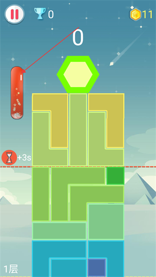 4、在关卡内注意左侧的倒计时,下落到一定高度可以增加倒计时时间。
