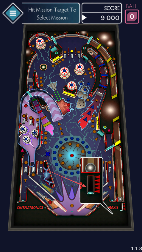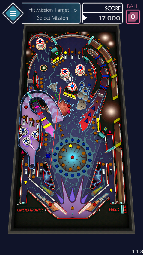 3、让弹球撞击台面上如眼睛形状、火箭形状等各类目标道具,获取分数,屏幕右上方会实时显示SCORE分数。
