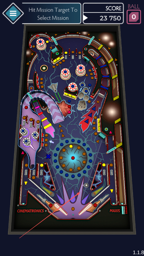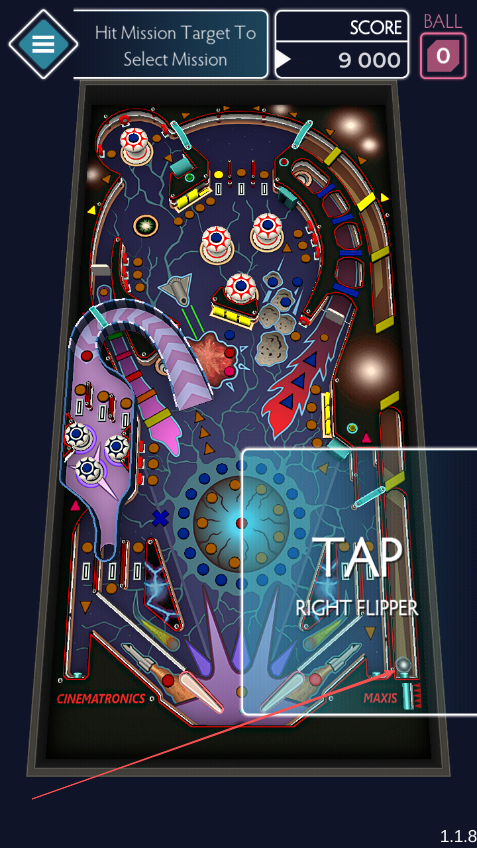 1、进入游戏界面,看到提示TAP RIGHT FLIPPER,点击屏幕相应位置发射弹球。