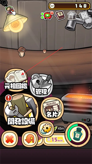 3、在右下角的洒水壶按键中,点击元祖图鉴可以查看获得到的菇菇信息记录。