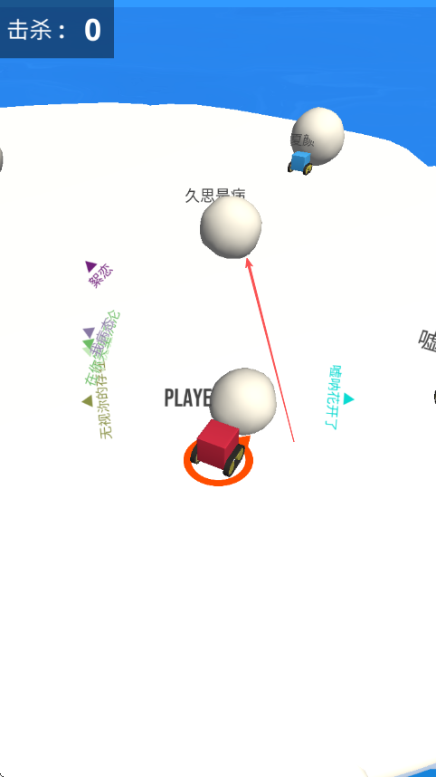 3、移动过程中收集雪球,让雪球变大,利用雪球撞击其他玩家的小车来击杀对方。