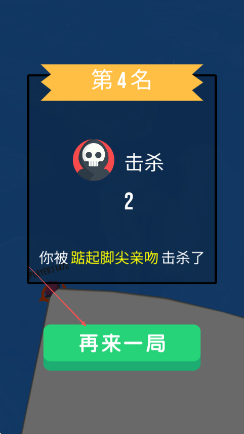 4、每局结束后查看排名和击杀数,若想继续游戏,点击再来一局按钮重新匹配对战。