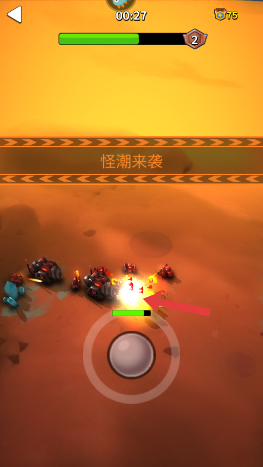 4、当屏幕出现怪潮来袭提示时,集中火力攻击大量来袭的敌人,抵御怪潮以确保角色安全并获取更多奖励。