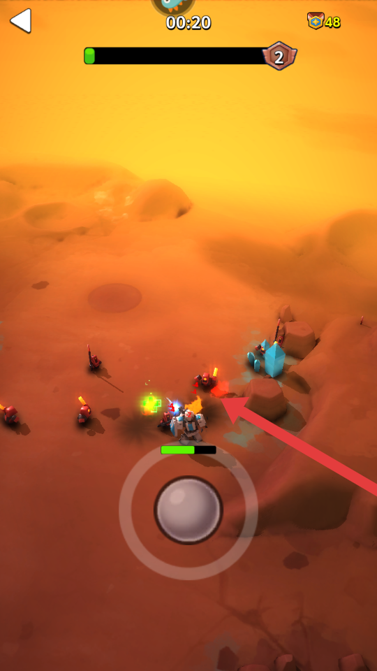 2、持续操控角色攻击红色敌人,通过战斗积累经验和资源,提升角色等级和战斗能力。