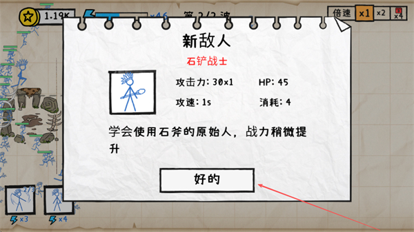 2、遇到新敌人石铲战士时,点击好的了解其属性,调整作战策略。