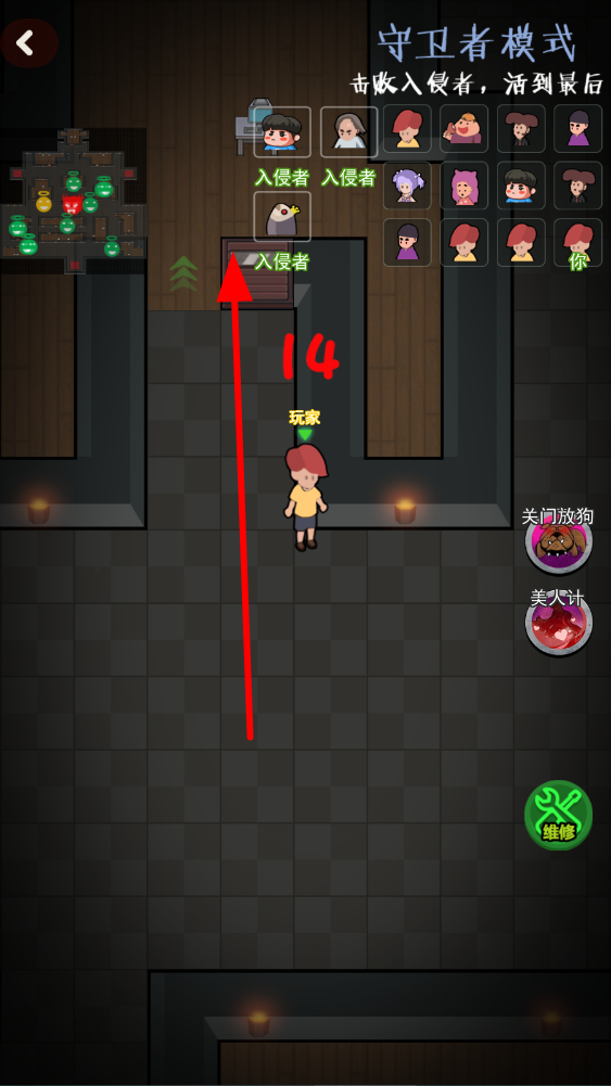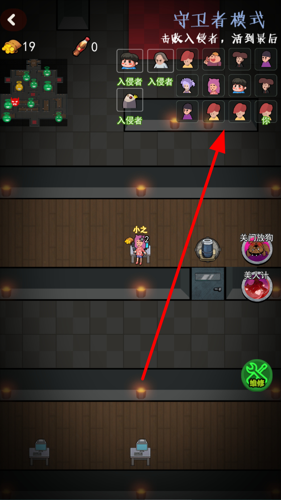4、守卫者模式,击败入侵者活到最后,要合理运用大招、房间布局和建造的设施,制定防守策略,应对一波又一波的入侵者,争取获得胜利。