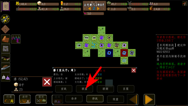 4、点击箭头指向的联盟选项,这是调整势力状态的必要操作,按指引操作即可完成对应互动。