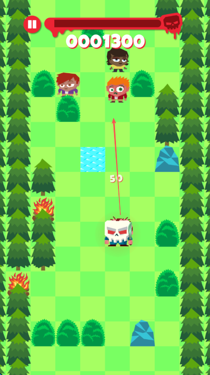 2、按照箭头方向,引导角色在林间移动,收集分数,躲避火焰、水坑等障碍。