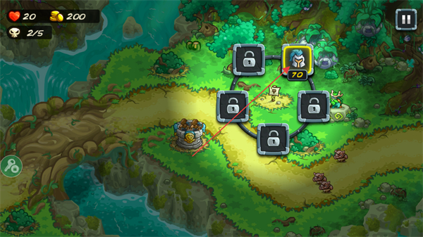 1、消耗70金币解锁防御塔,选择对应建筑位建造,准备防御敌方单位。