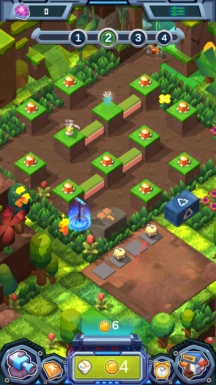 3、利用获取的金币,按箭头指引,在下方功能栏购买防御塔等道具,布置在合适位置。