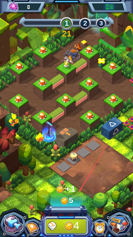 2、击败敌人后,获取金币,如箭头所示,金币数量从0变为5。