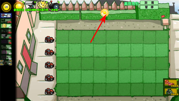 3、点击场景区域收集资源,这是维持战斗的核心操作,收集后可获得种植植物的能量,保障后续能持续补充防御单位。