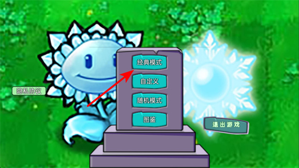 1、点击经典模式选项,这是进入游戏玩法的关键操作,点击后可进入对应的战斗配置界面,着手准备植物阵容的布置。