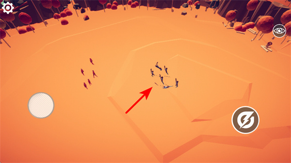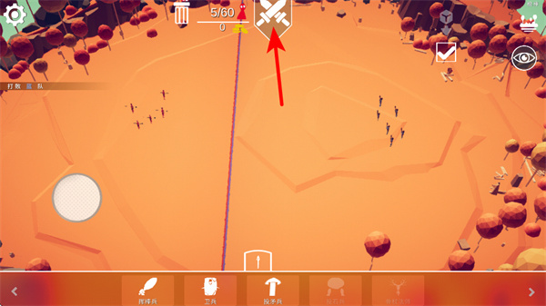 3、紧跟红色箭头指引,点击敌方单位聚集的区域,我方单位会向该区域移动并发起攻击,触发双方单位正面交战。