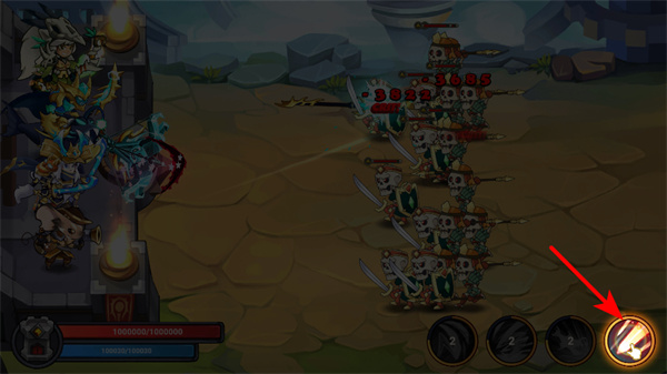 1、游戏中可利用角色的攻击技能对敌人如骷髅兵造成大量伤害,攻击时需关注敌人的数量和阵型,确保技能覆盖足够多的敌人。