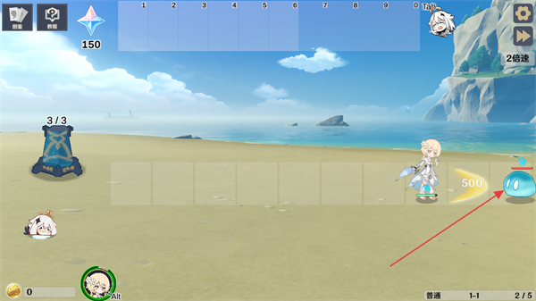 3、战线上会出现史莱姆军团,通过移动旅行者进行攻击保护水晶不被攻击。