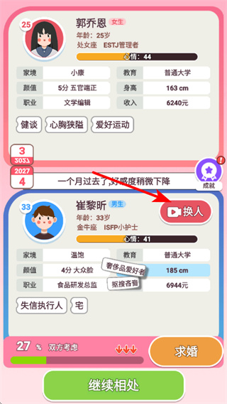 4、在恋爱相处中调整对象,对象调整是优化体验的重要操作,调整后可更换相处对象,寻找恋爱伴侣以丰富游戏体验。