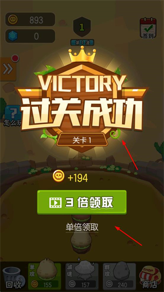 3、关卡过关成功后,可选择领取奖励,积累金币等资源,助力后续游戏发展。
