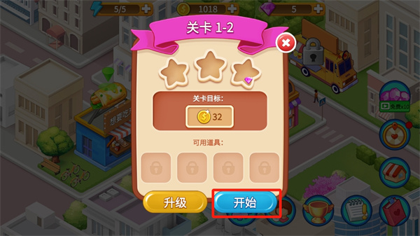 2、在选关卡的界面中,我们随意的点击一个关卡,进入到经营制作食物环节;