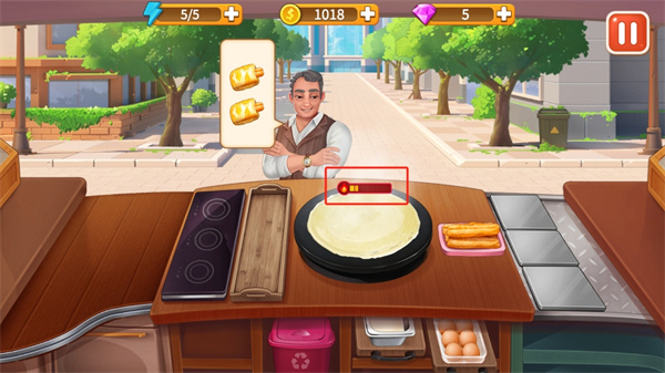 4、随后我们就可以接待顾客,把食物去进行制作,可以看到会有一个火候度;