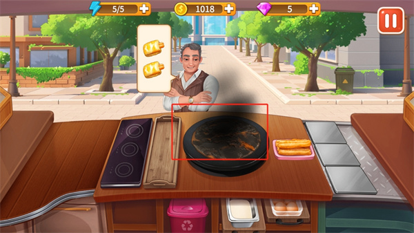 5、如果火候满了,那么就会出现食物糊了的情况,这时候我们双击食物就可以丢弃到垃圾箱。