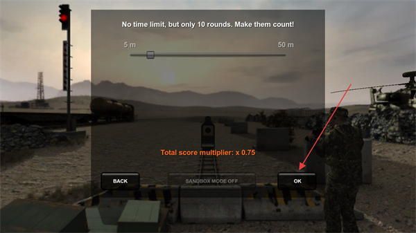 1、查看关卡提示Notimelimit,butonly10rounds.Makethemcount!,点OK确认,进入射击环节。