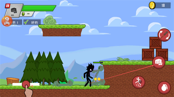 1、操控火柴人移动,靠近道具获取资源,收集金币,提升战力。