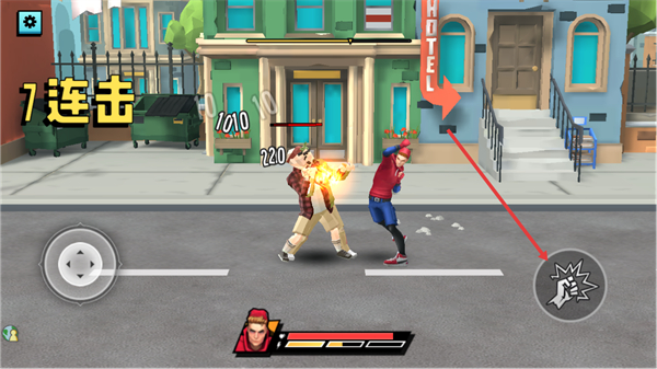 1、操控角色攻击敌人,达成2连击,削减敌人血量。