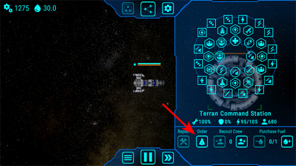 1、游戏中点击维修按钮,可对飞船进行维护,维护关注资源消耗设施的损坏程度,确保正常运转。