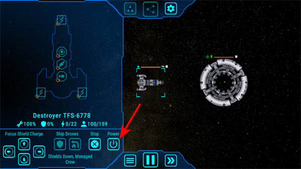 2、点击按钮,可调整飞船的动力系统,调整时需结合航行需求和能源状况,保障动力输出稳定。