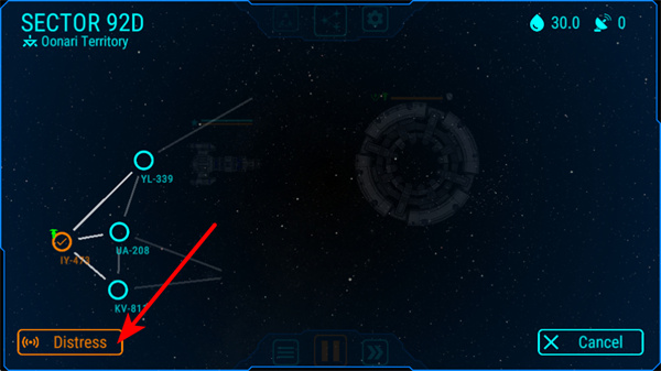3、在地图中选择Distress求救信号区域,可前往处理求救任务,关注危险等级和自身飞船的战力。