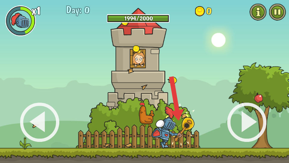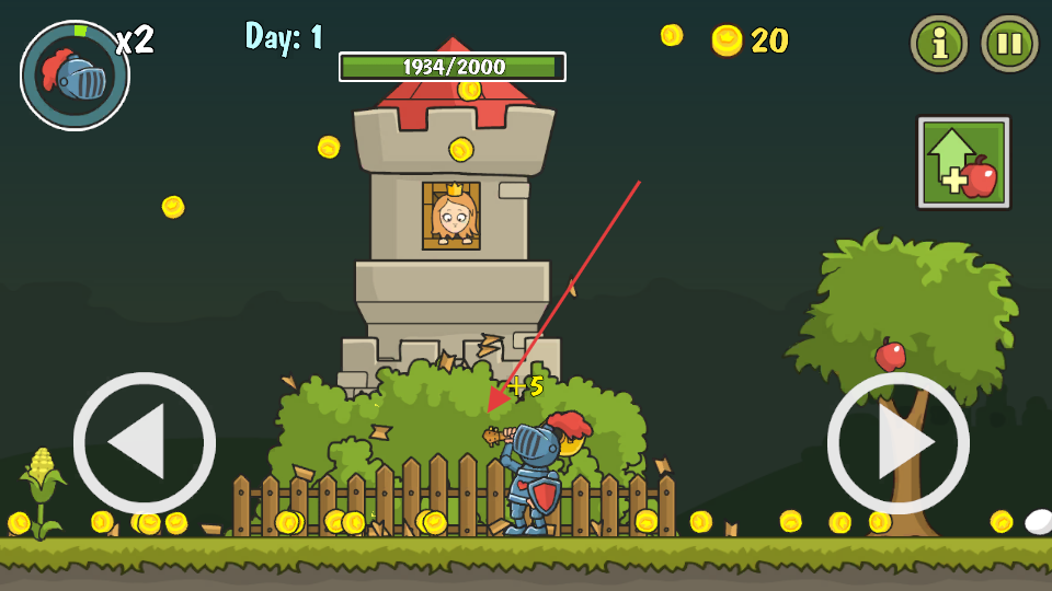 4、经过一天的发展,骑士力量提升,城堡周围的障碍物造成更多伤害,为后续城堡升级和公主营救积累资源。